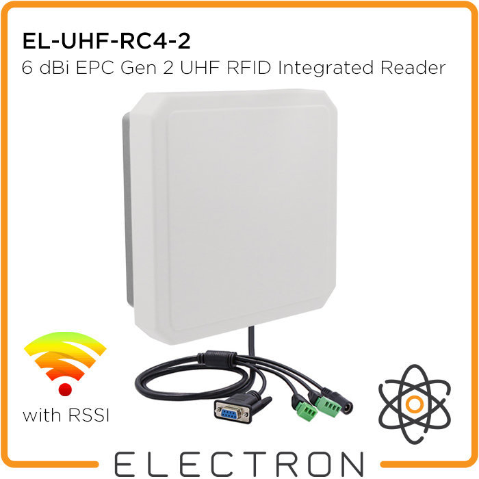 Electron EL-UHF-RC4-2 adalah jenis RFID Fixed UHF Reader jarak menengah (midde range) dengan antenna 6 dBi Circular. Jarak baca maksimal 5 meter (tergantung tag).