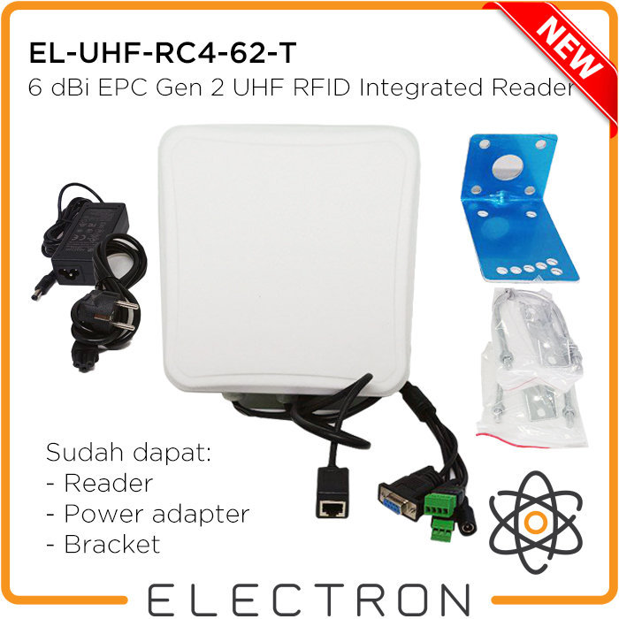Electron EL-UHF-RC4-62 adalah jenis RFID Fixed UHF Reader jarak menengah (midde range) dengan antenna 6 dBi Circular. Jarak baca maksimal 5 meter (tergantung tag).