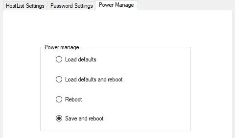 - Pergi ke tab “Power Manage”, pilih “Save and reboot”.