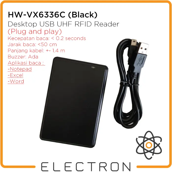 Desktop UHF RFID Reader dengan output seperti keyboard.