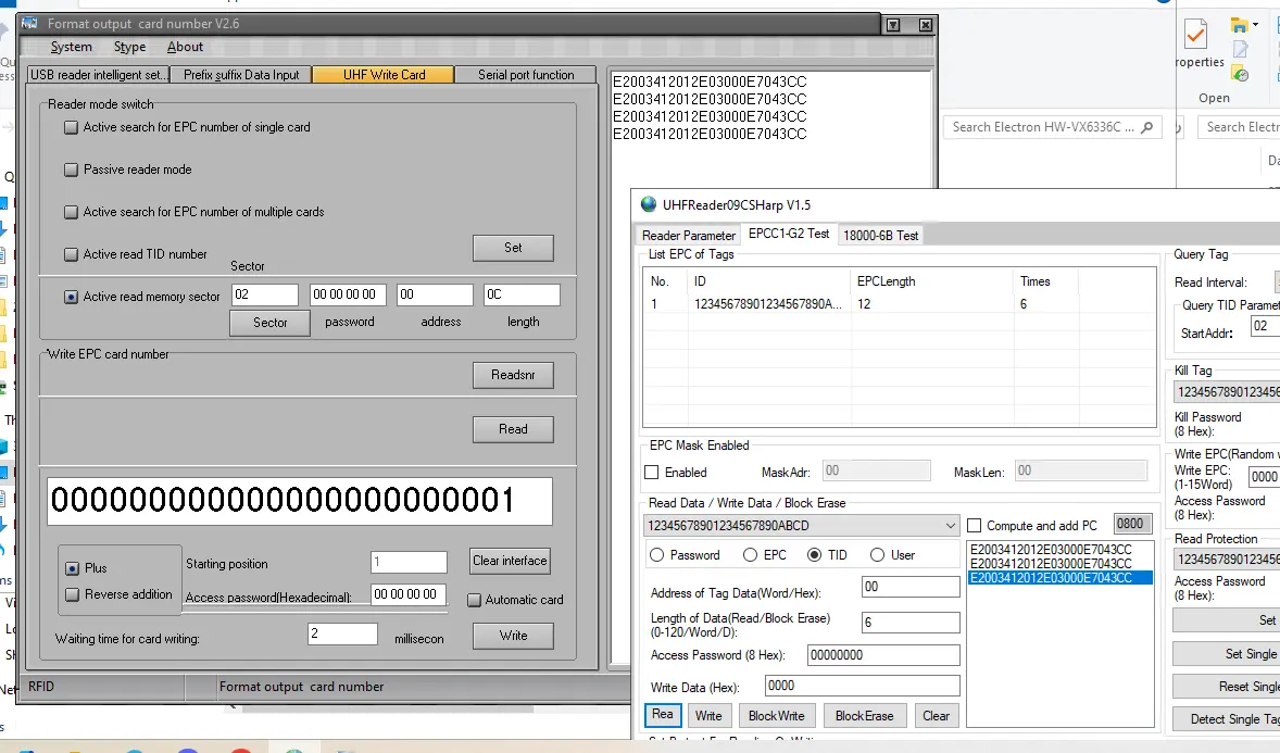 - Tulisan merah di sebelah pilihan merupakan contoh output sebuah kartu UHF RFID