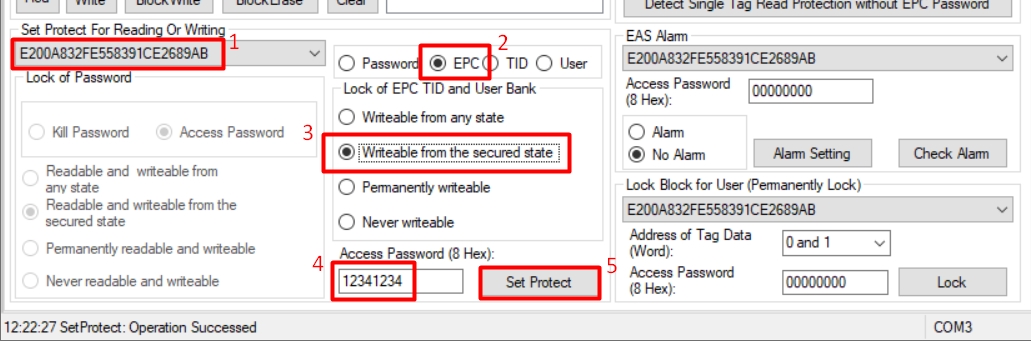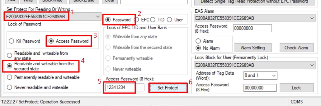 Proses set dan lock sudah selesai pada tahap ini, jika ingin mengubah nilai EPC, pastikan menggunakan access password yang sudah diperbarui.