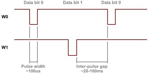 Sinyal pada kabel data 1 maupun data 0 bersifat pull-up ke tegangan 5V sehingga untuk mikrokontroler pada umumnya dapat menerima sinyal dari Wiegand tanpa memerlukan konverter tambahan.